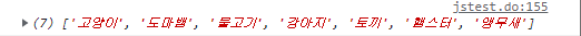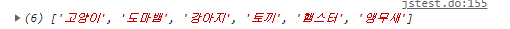 let arr=["고양이","강아지","토끼","햄스터","앵무새"];